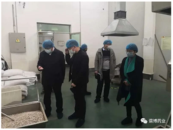 鄭市長一行深入了解我公司在新型冠狀肺炎疫情下復工復產(chǎn)情況,并深入生產(chǎn)車間、展廳、煎配中心了解企業(yè)詳細情況。公司總經(jīng)理王鵬做了詳細匯報。副市長鄭超對謂博藥業(yè)的疫情防控舉措及有序復工復產(chǎn)給予充分肯定,同時強調(diào)企業(yè)要正確處理好疫情防控和安全生產(chǎn)的關系,確保各項工作穩(wěn)妥有序進行,做到安全生產(chǎn)和疫情防控“兩手抓、兩促進”。