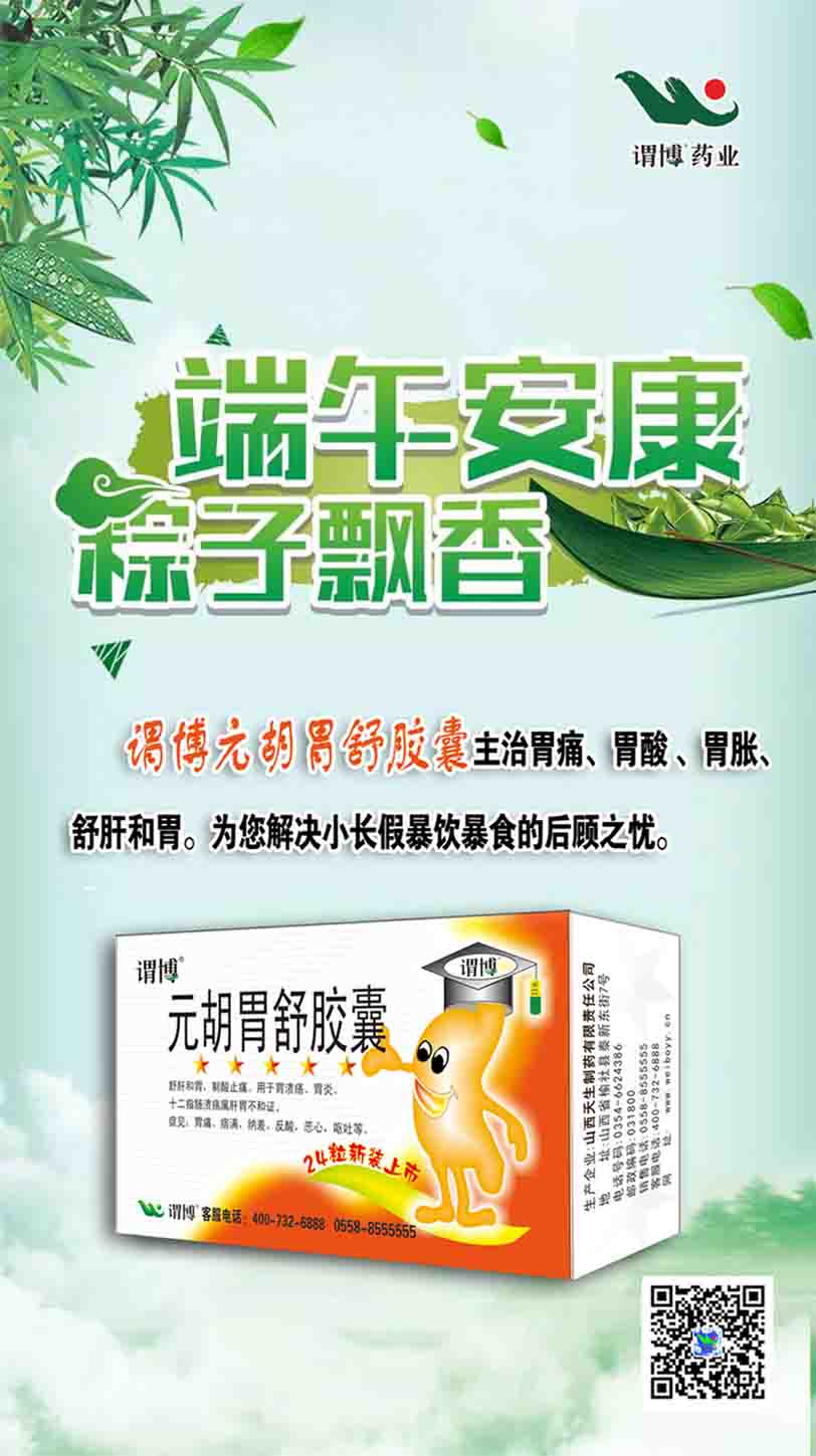 端午節(jié)是夏天的節(jié)日,夏季到來(lái),養(yǎng)胃正當(dāng)時(shí)。世界杯到來(lái),熬夜看球?qū)ι眢w不好,氣溫升高,喝冷飲吃冷食是家常便飯的事,但因此會(huì)造成拉肚子,導(dǎo)致急性腸胃炎等疾病。而且粽子吃多了會(huì)引起消化不良,因此謂博藥業(yè)多年來(lái)發(fā)起腸胃保衛(wèi)戰(zhàn),為大家的腸胃健康保駕護(hù)航。所以如果遇到胃痛,胃酸,胃脹等情況可以選擇謂博元胡胃舒膠囊。