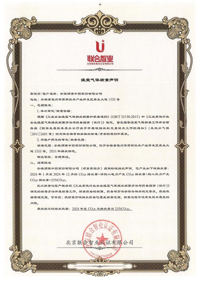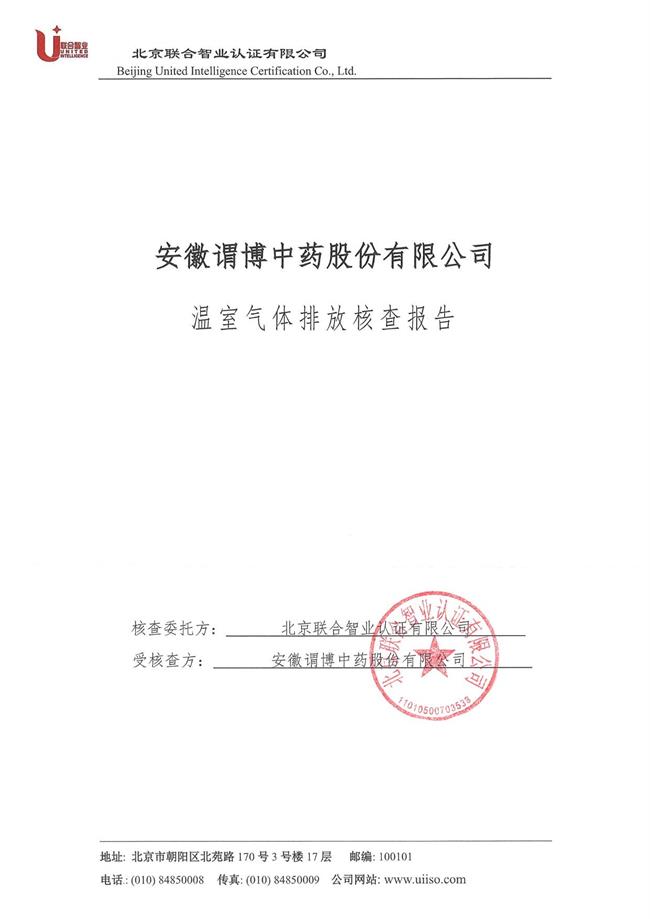 安徽謂博中藥股份有限公司溫室氣體排放核查報告